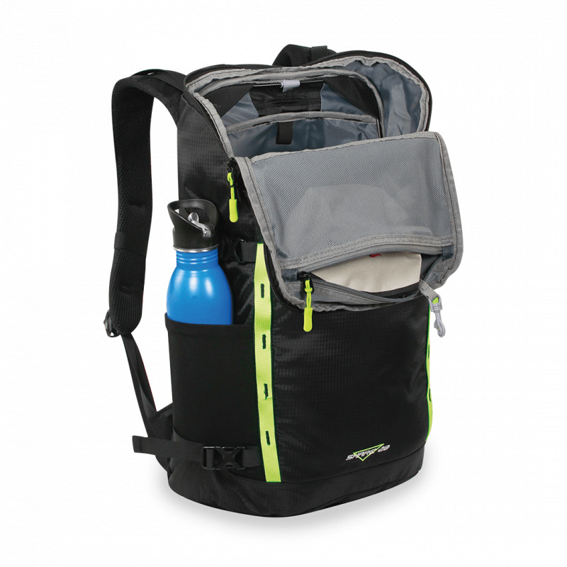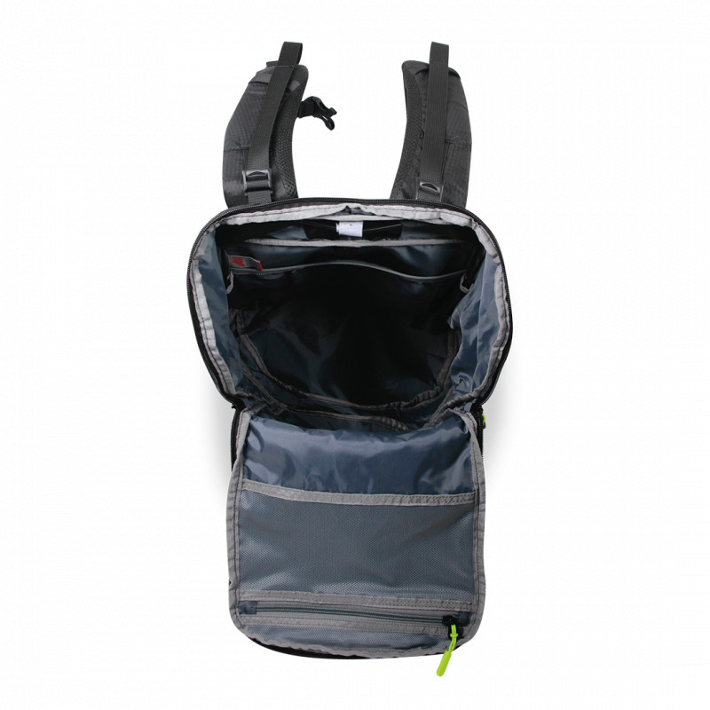 Nový viacúčelový batoh vybavený vertikálnym chrbtovým systémom, polstrovaným priedušnou sieťovinou. Je vhodný na všetky účely, jeho otvor v tvare U je praktický, vďaka čomu sa rýchlo dostanete do jeho vnútra. Má pohodlne tvarované, polstrované a nastaviteľné ramenné popruhy s posuvným hrudným popruhom a núdzovou píšťalkou. Je vybavený 2 bočnými vreckami na fľaše, predným vreckom a vnútorným sieťovaným vreckom na osobné veci. Je vybavený bočnými kompresnými popruhmi a funkčnými úchytmi. Kompatibilný s hydratačnými systémami.